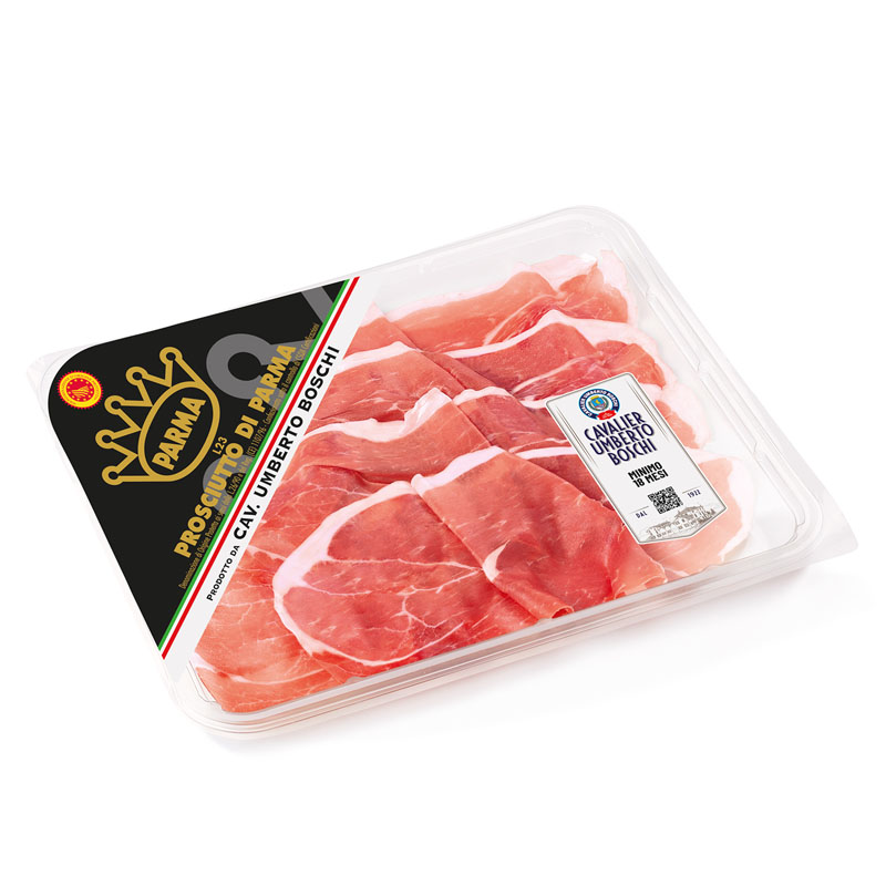 Le Jambon de Parme DOP 18 Mois Tranché se dévoile comme une perle rare de la charcuterie italienne, capturant l'essence même du terroir de Parme. Issu d'une sélection minutieuse des meilleurs jambons, chaque tranche incarne la quintessence de la qualité et du savoir-faire traditionnel de la région.