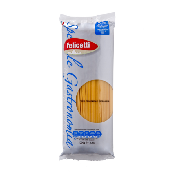 Découvrez les linguine Felicetti, la quintessence de la tradition italienne, spécialement conçues pour les professionnels de la restauration. Fabriquées à partir des meilleures semoules de blé dur, nos linguine offrent une texture ferme et un goût authentique qui sublimeront toutes vos créations culinaires. Idéales pour accompagner vos sauces les plus raffinées, elles sont le choix parfait pour des plats savoureux et élégants. Faites confiance à la qualité Felicetti pour émerveiller vos convives et enrichir votre menu.