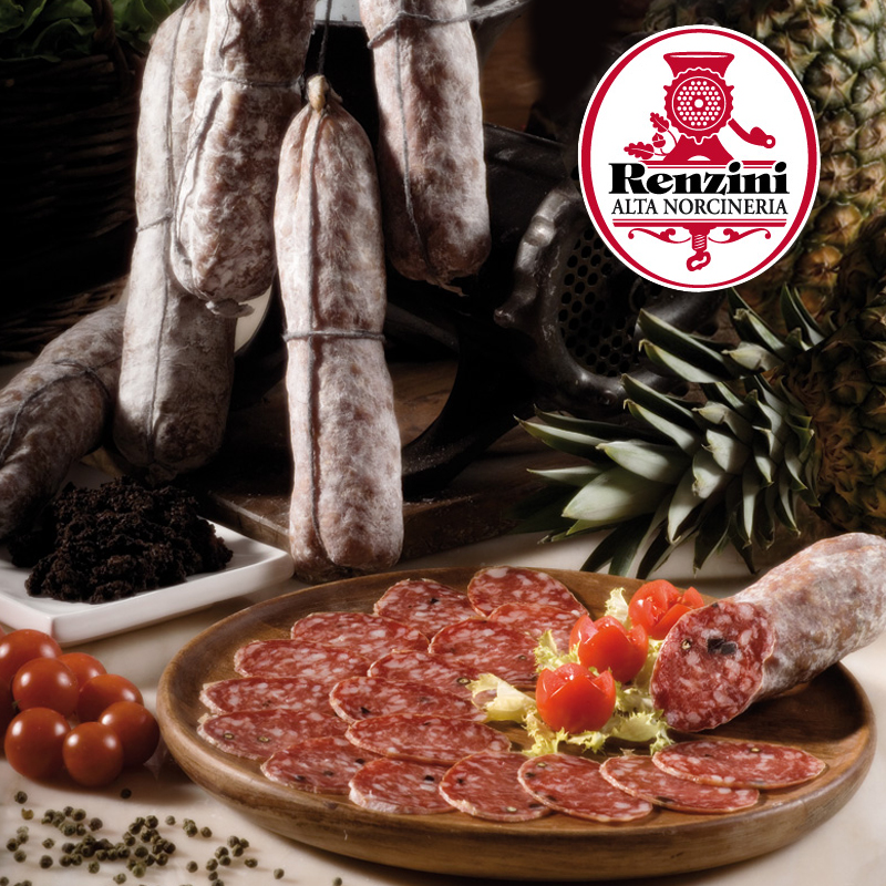 Né dans une famille avec des générations d’expérience dans la boucherie de porc, Renzini était une personne hautement qualifiée, un maître boucher de porc, presque une véritable icône du monde de la charcuterie italienne. Avec une grande passion et un esprit d’entreprise aigu, Renzini a créé des produits qui, tout en respectant la tradition, étaient particulièrement différents de ceux habituellement commercialisés. Il a également innové en proposant des charcuteries plus conformes aux règles de la diététique moderne (moins de matières grasses, moins de sel et surtout une réduction drastique ou suppression des additifs). Au fil du temps, il a ainsi su se réinventer et réinventer son entreprise en proposant des recettes uniques et toujours de haute qualité. Il a transmis un patrimoine fascinant et complexe de charcuterie qui embrasse toutes les phases de préparation, allant de la ferme porcine, jusqu’à la table. La marque Renzini transmise à travers 4 générations, regroupe aujourd’hui une sélection rigoureuse des produits les plus représentatifs du territoire ombrien, des saveurs uniques, un goût incomparable, destinés à ceux qui veulent le meilleur et savent l’apprécier.