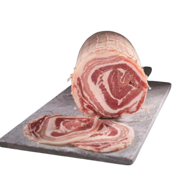 La Pancetta Classica Roulé Pepe Nero est une variété classique de pancetta italienne, roulée et assaisonnée avec du poivre noir. Élaborée à partir de la poitrine de porc, cette charcuterie subit un processus de séchage et d'affinage. La pancetta, enroulée et généreusement assaisonnée de poivre noir, offre une saveur équilibrée entre le sel et les arômes piquants du poivre. Souvent utilisée comme ingrédient dans divers plats, la Pancetta Classica Roulé Pepe Nero ajoute une note délicieuse et parfumée aux préparations culinaires italiennes.