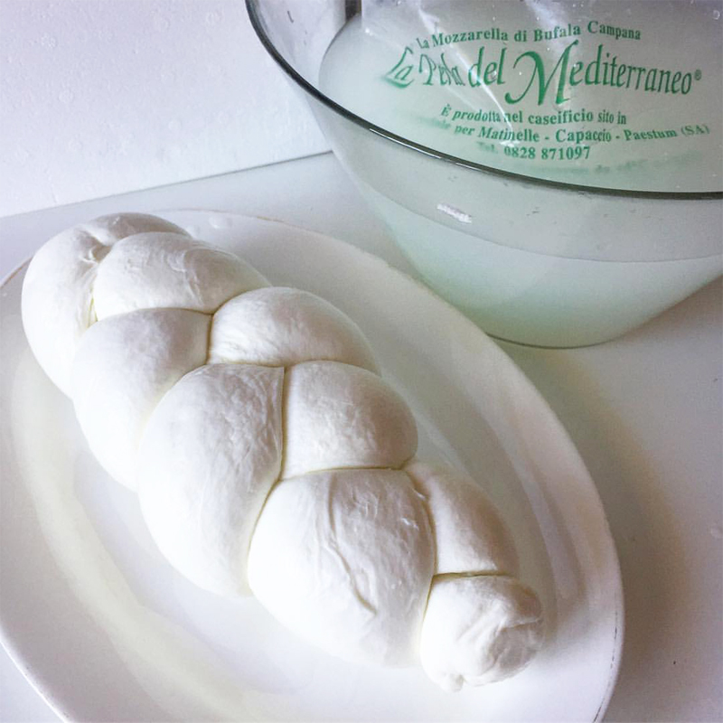 Lait de bufflonne frais, lactosérum naturel (2-2,5%) sel (2%) et présure (0,01%).